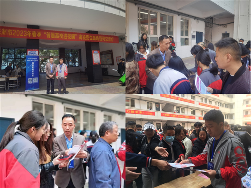 4月8-9日,美术与设计学院杨虎智书记、外国语学院张明老师,体育学院朱建伟副书记、崔建彪老师分别组队赴岳阳市、株洲市等5所中学开展线下招生咨询活动,为近千余名考生、家长宣传和介绍了学校的基本情况及招生政策。
