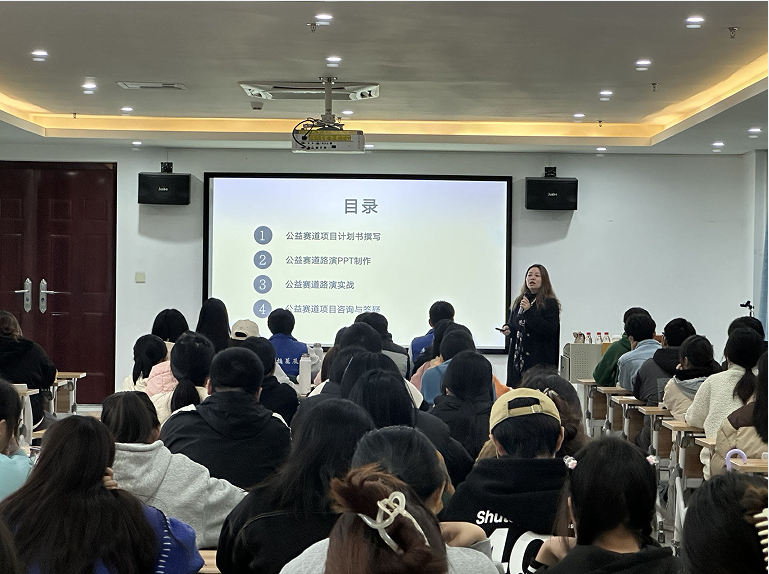 4月24日下午,我校在百熙楼414举办大学生创新创业比赛公益赛道参赛经验分享会。本次分享会邀请到我校音乐舞蹈学院郭宇博士担任主讲嘉宾,全校近120名学生参加了此次分享会。