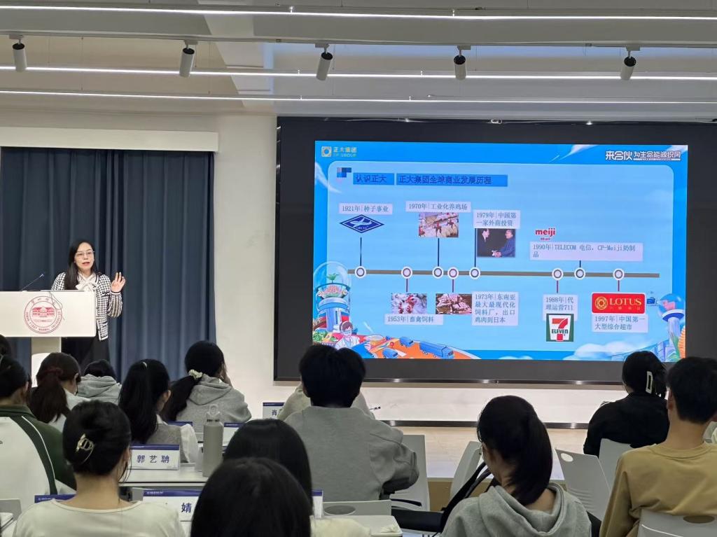 随后,正大集团杨云经理围绕求职流程、求职简历、个体面试、群体面试、职场礼仪等主题为同学们进行授课。帮助学生挖掘个人潜能,精准提升核心竞争力,强化规划意识,激发学习原动力。