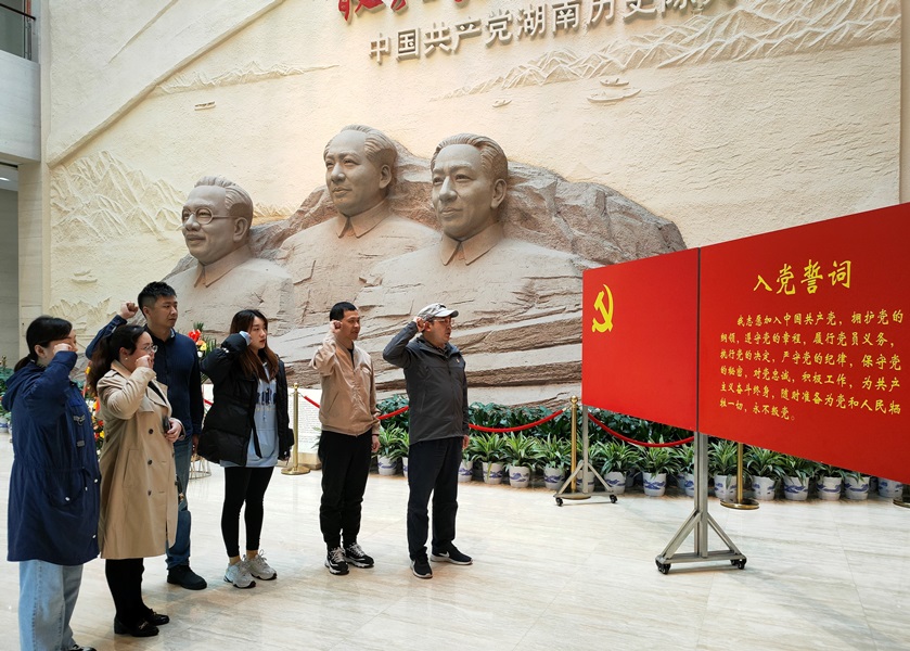 下午在湖南省党史馆,党员们跟随着讲解员的脚步,沿着历史发展的脉络,一起重温了中国共产党党史与革命史,回顾了党的光辉历程和辉煌成就。展厅通过图片、视频、人物蜡像、场景再现等多种形式,全面展示了中国共产党的创建和发展历程,展示了历年来我省党建工作取得的丰硕成果。